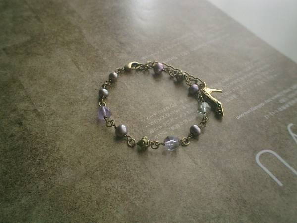妖精のため息・・シリーズです♪儚げなフローライト・・神秘的なフローライトのブレスレットです♪8ミリ位のラフカットのフローライトは6ミリのポテトの淡水パールやデザインメタルを合わせて可憐な表情です♪長さは全長23センチ位で調節自由です♪お揃いのネックレスやブレスレットも出品しています♪♪シンプルで長く着けていただけるデザインを考えて作りました♪ハンドメイドをご理解頂いてノークレーム、ノーリターンでお願いします
