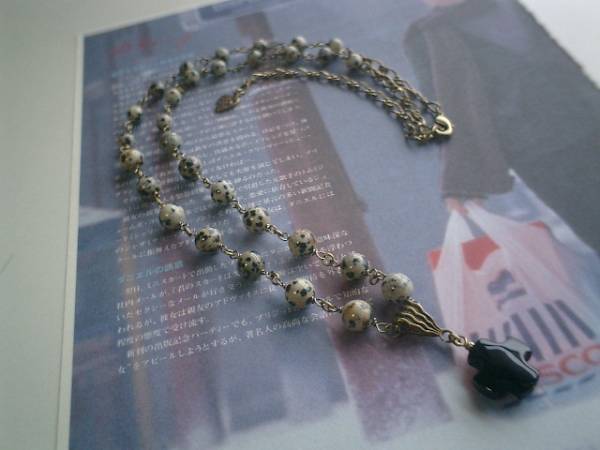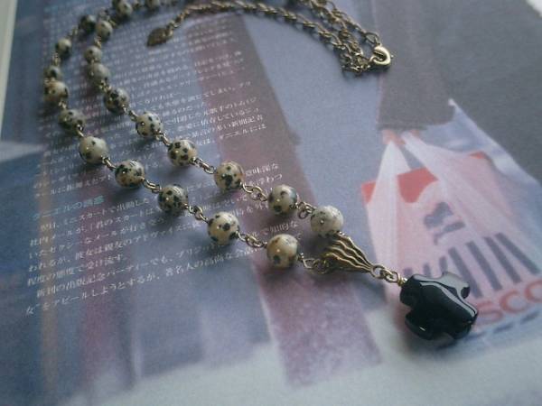 シック・パンクシリーズです♪小粋で可愛い人に・・キュートなオニキスとダルメシアンジャスパーのネックレスです♪さりげなく遊びの入ったデザインです♪オニキスのクロスをトップにシック・パンクしています♪ダルメシアンジャスパーは6ミリと8ミリの丸玉です♪トップは15ミリのオニキスのクロスです♪長さは全長72センチ位で調節自由です♪♪お揃いのネックレスやブレスレットも出品しています♪♪シンプルで長く着けていただけるデザインを考えて作りました♪ハンドメイドをご理解頂いてノークレーム、ノーリターンでお願いします