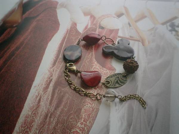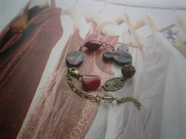 イノセント・ガール・・シリーズです♪赤とブラウンの誘惑・・秋冬のお洋服に合わせて個性的な異素材を集めたブレスレットです♪繊細なスモーキークォーツに深い赤やブラウンにアーミー柄を合わせてアンテークな表情です♪スモーキークォーツは8ミリの丸玉です♪赤やブラウンの樹脂ビーズやデザインチャームに菩提樹ビーズを合わせてシックにまとめました♪長さは全長24センチ位で調節自由です♪♪お揃いのネックレスも出品しています♪♪お揃いのシリーズも出品しています♪シンプルで長く着けていただけるデザインを考えて作りました♪ハンドメイドをご理解頂いてノークレーム、ノーリターンでお願いします