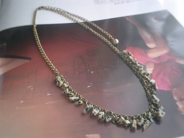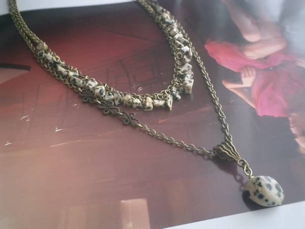 ロマンチック見本帳・・シリーズです♪偶然の恋人・・キュートなダルメシアンのネックレス2点セットです♪ダルメシアンジャスパーは4ミリから6ミリ位までのさざれと13ミリ位のラフタンブルです♪さざれのネックレスは全長58センチ位で調節自由です♪チョーカー風にされてもブレスにされても可愛いです♪長い方のネックレスはシックな座金でおめかししたダルメシアンのラフタンブルです♪お花のチャームを合わせて可憐な表情です♪長さは76センチ+アジャスター14センチで最長90センチ位です♪それぞれ単品でも出品しています♪♪お揃いのブレスレットも出品しています♪シンプルで飽きのこないいつまでも着けられるデザインを考えて作りました!ハンドメイドをご理解頂いてノークレーム、ノーリターンでお願いします