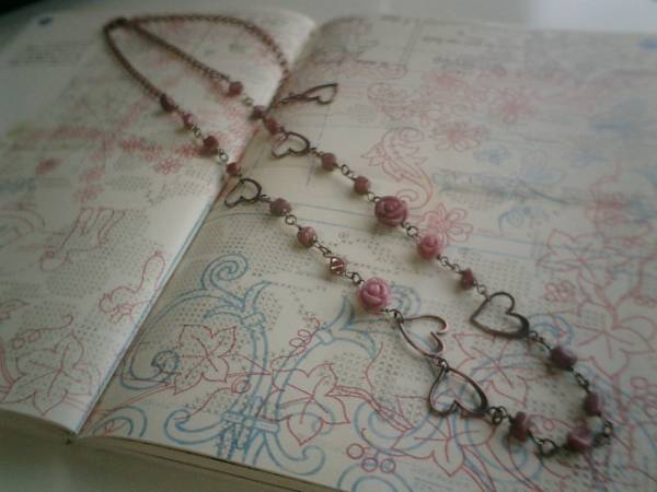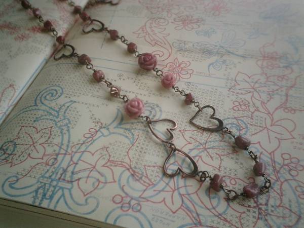 ロマンチック見本帳・・シリーズです♪シックなロードナイトのネックレスです♪6ミリから7ミリ位のロードナイトのタンブルに8ミリから12ミリ位までの大きさ違いのロードナイトの薔薇やハートのメタルチャームを合わせて可憐な表情です♪長さは全長72センチ位で調節自由です♪画像のようにブレスにされても可愛いです♪同じデザインの長さ違いのネックレスも出品しています♪シンプルで飽きのこないいつまでも着けられるデザインを考えて作りました!ハンドメイドをご理解頂いてノークレーム、ノーリターンでお願いします