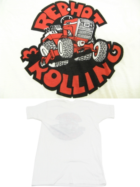 RED HOT & ROLLINGと書かれたモンスターカーTシャツです。バランスのいいハイセンスなイラストが光ります。