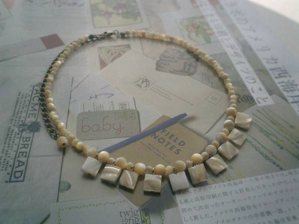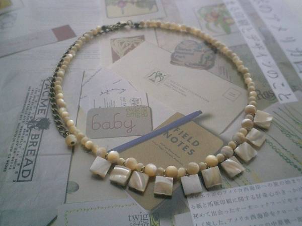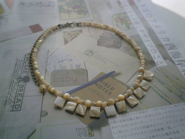 ベーシック・スタイル・・シリーズです♪恋する予感・・大人色のベージュのマザーオブパールのネックレスです♪4ミリと6ミリの丸玉に8ミリのスクエアを合わせてキュートなデザインです♪長さは37センチ+アジャスター13センチで最長50センチ位です♪お揃いのブレスレットやピアスも出品しています♪♪シンプルで飽きのこないいつまでも着けられるデザインを考えて作りました!ハンドメイドをご理解いただいてノークレーム、ノーリターンでお願いします