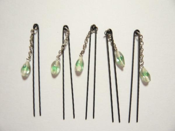 ★夜会巻きやまとめ髪に Uピン 5本セット クリスタル グリーン
