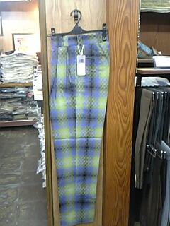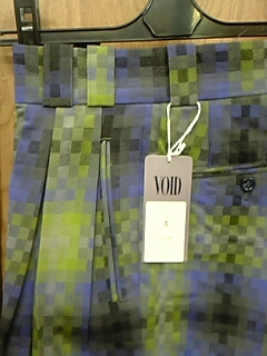存在感あふれる 個性派ハンサムワイドモードパンツ です。生地は パープル グリーン ネイビー グレー色 の ファンシーチェックパターン です。一番画像表示の色が 当商品の色です。素材は 毛 100 % の 薄地です。 サイズは ウエスト 74cm 渡り幅 36cm 腿幅(股下10cmの所) 34,5cm 裾幅 22,5cm 前股上 28,5cm 股下(フリー状態) 90cm です。以上 表示  サイズ です。 勿論 新品ですので、お好きな長さで 裾上げ修理し 着用可能です。  尚 毎週木曜日は業務定休日です。ご連絡、ご発送とも木曜明けの金曜日にずれ込む事 ご了承下さい。よろしくお願い申し上げます。