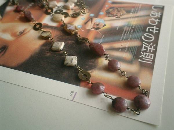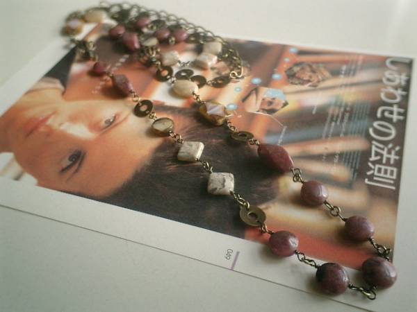 コレットの宝石箱・・シリーズです♪大人色のピンク・・シックなモーヴピンクのロードナイトのネックレスです♪10ミリのコイン、18ミリのナツメ型などデザイン違いのロードナイトにスクエアやオーバルカットのアフリカンオパールやチェコビーズやデザインチェーンを合わせてアンティークモダンしています♪長さは全長108センチ位で調節自由です♪2連にされても素敵です♪お揃いのブレスレットも出品しています♪シンプルで長く着けられるデザインを考えて作りました!ハンドメイドをご理解頂いてノークレーム、ノーリターンでお願いします