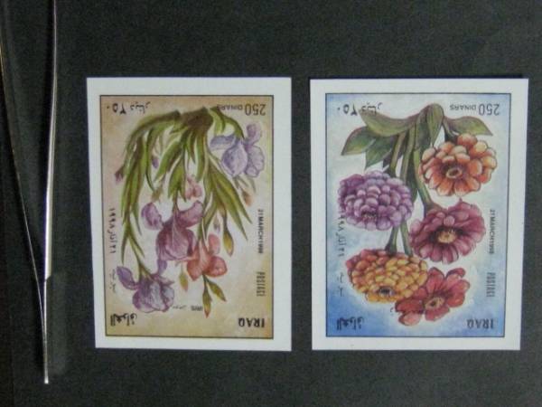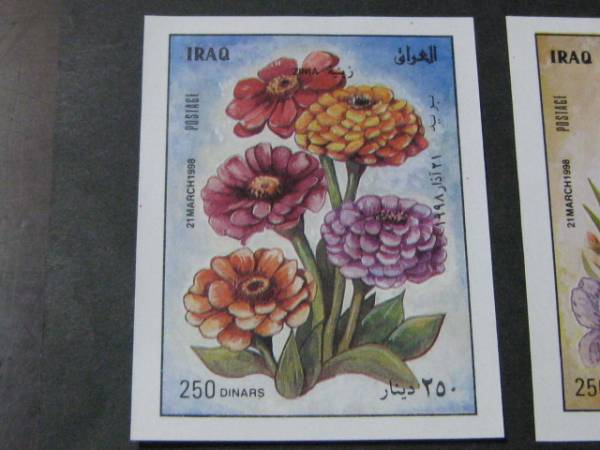 ☆№247☆ イラク切手 1998年 花 小型シート= 無目打 2種 未使用