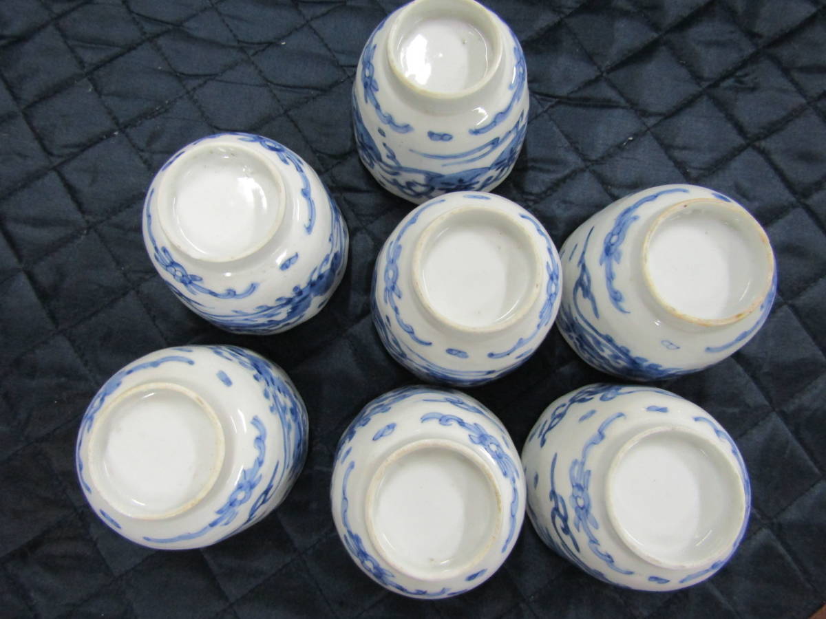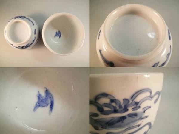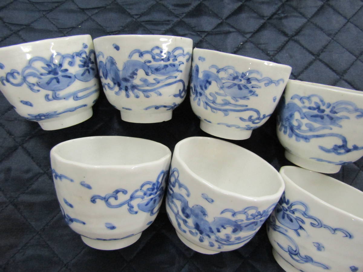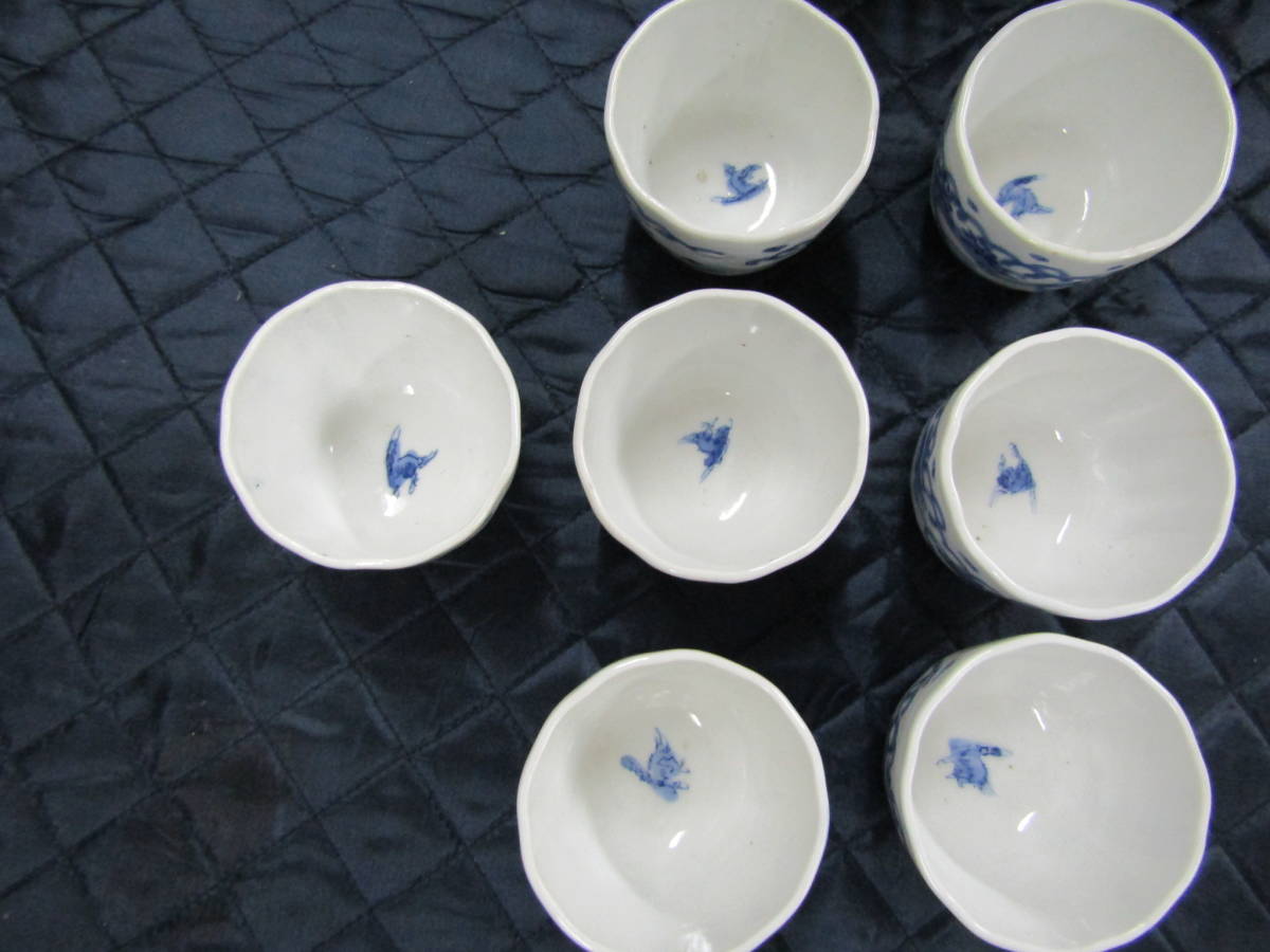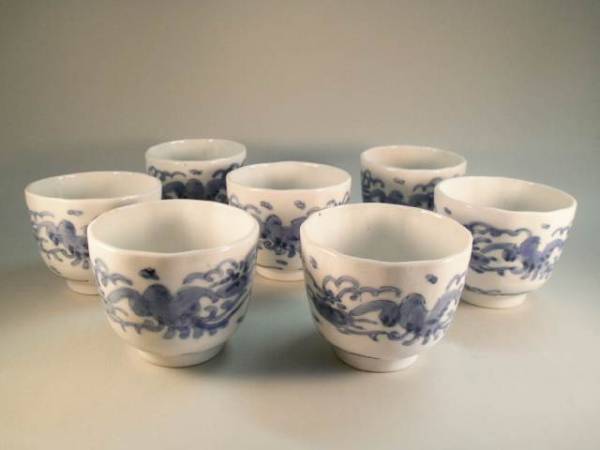 ■明治初期、伊万里 染付蕎麦猪口7客■(直径約83mm,高さ約69mm) 4客無傷、1客にひっつき2客は薄いニュウがあります。 | |