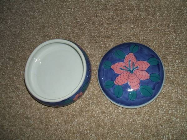 @@@昭和レトロ 蓋もの 山百合? 色絵 雑貨 その他 有田焼