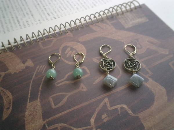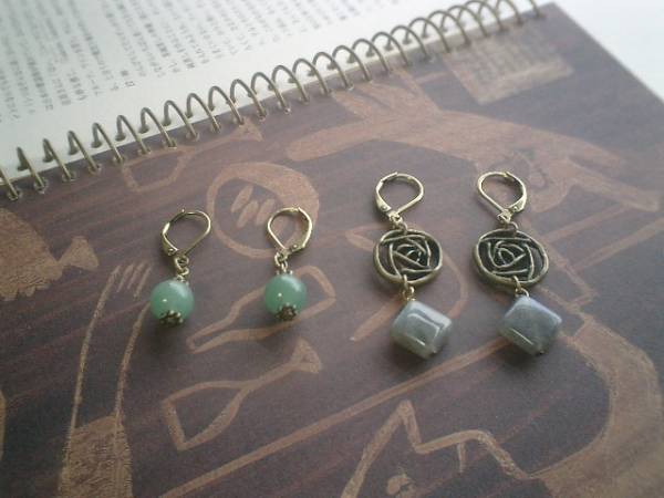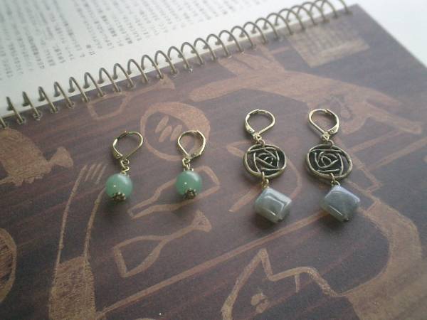 薔薇の香りの女の子・・シリーズです♪春色を集めて・・オフホワイトやグリーンでまとめたふんわりやさしい色のピアス2組です♪デザイン違いのペア2組です♪10ミリのスクエアのラブラドライトには薔薇の透かしチャームを合わせました♪可憐な表情です♪長さは全長5センチ位です♪8ミリの丸玉のグリーンアベンチュリンにはシックな座金を合わせました♪長さは3・5センチ位です♪イヤリングにも変更出来ます♪それぞれ単品でも出品しています♪お揃いのネックレスやブレスレットも出品しています♪♪シンプルで長く着けていただけるデザインを考えて作りました♪ハンドメイドをご理解頂いてノークレーム、ノーリターンでお願いします