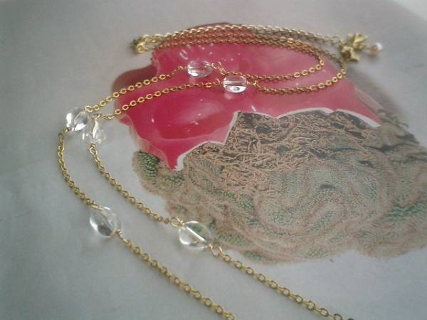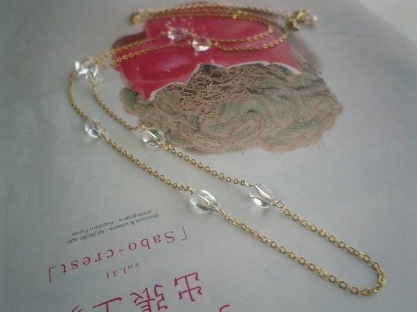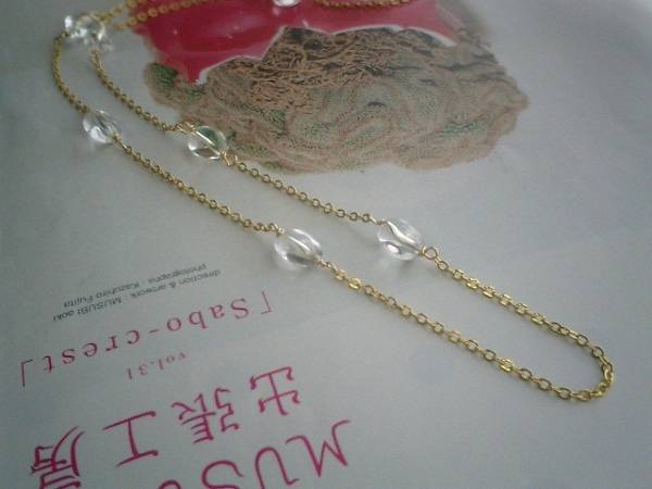 後ろボタンのワンピース・・シリーズです♪水晶見本帖・・キュートな水晶のネックレスです♪繊細なチェーンを合わせてアンティークモダンな表情です♪9ミリから11ミリ位のラフカットの水晶に繊細なチェーンを合わせました♪長さは80センチ+アジャスター12センチで最長92センチ位です♪お揃いのブレスレットも出品しています♪♪シンプルで飽きのこないいつまでも着けられるデザインを考えて作りました!ハンドメイドをご理解頂いてノークレーム、ノーリターンでお願いします