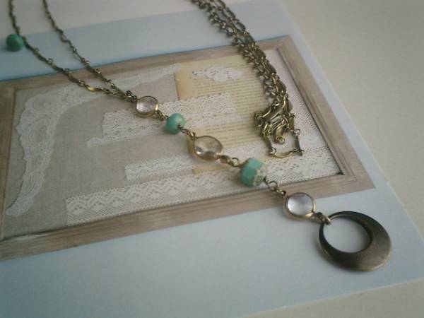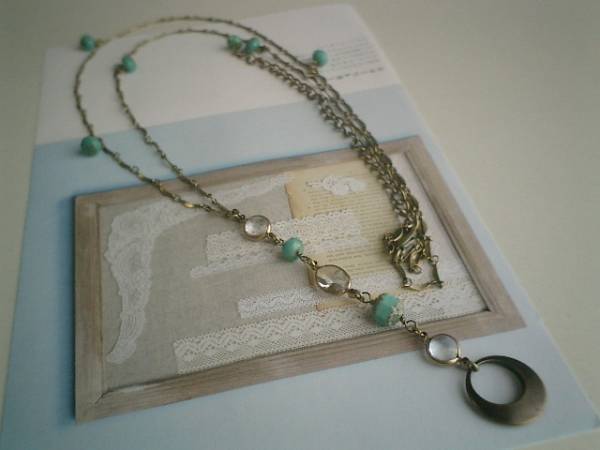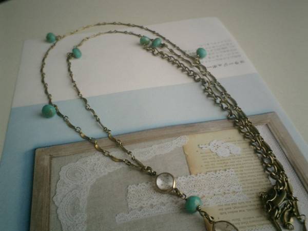 フレンチ・シック・・シリーズです♪お気に入りのチェコ・・シックなターコイズ色のチェコビーズのネックレスです♪繊細な6ミリから8ミリ位のチェコビーズに8ミリのデザインチャームや18ミリのリングを合わせてさりげなくキュートな表情です♪長さは全長94センチ位で調節自由です♪トップは10センチ位です♪♪お揃いのブレスレットやピアスも出品しています♪♪ハンドメイドをご理解いただいてノークレーム・ノーリターンでお願いします♪