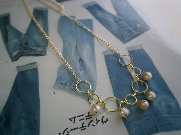 後ろボタンのワンピース・・シリーズです♪イブの夜に・・淡水パールのネックレスです♪儚げでロマンチックな表情です♪ネックレスは座金でおめかしした8ミリ位のポテトの淡水パールとデザインチェーンを合わせてアンティークモダンしています♪長さは全長55センチ位で調節自由です♪お揃いのイヤリングも出品しています♪シンプルで飽きのこないいつまでも着けられるデザインを考えて作りました!ハンドメイドをご理解頂いてノークレーム、ノーリターンでお願いします
