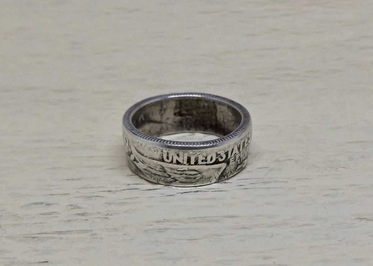 日本の現行貨幣は手を加えることが法律で禁止されていますが、アメリカのお金を加工するのは個人の自由!さすが自由の国アメリカ!? 19321964発行(銀90% 10% アメリカ初代大統領のジョージ・ワシントンの肖像とアメリカの象徴である鷲が刻まれたコインです。指先にクールなかっこよさをイメージさせる、スタイリッシュなシルエットが魅力のアクセサリー。存在感抜群のデザインは、カジュアルファッションのアクセントとして幅広く活躍してくれます。