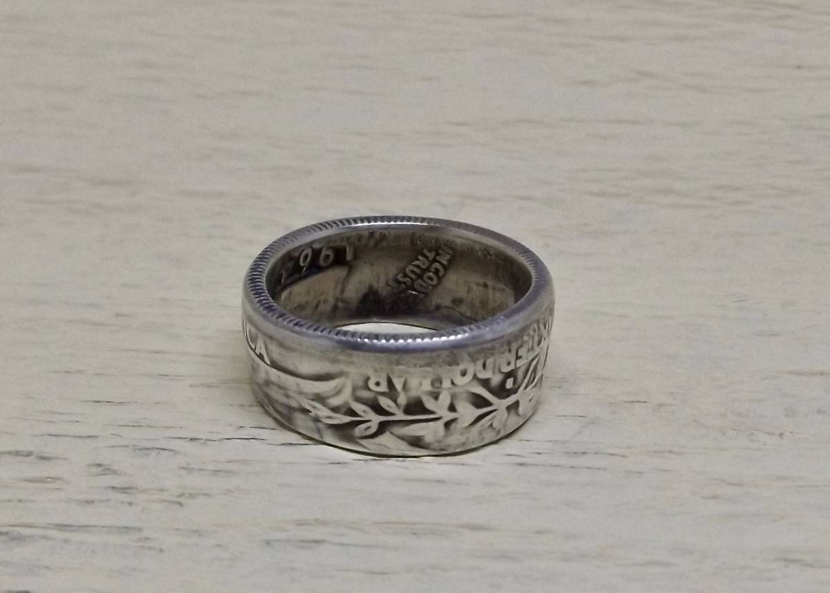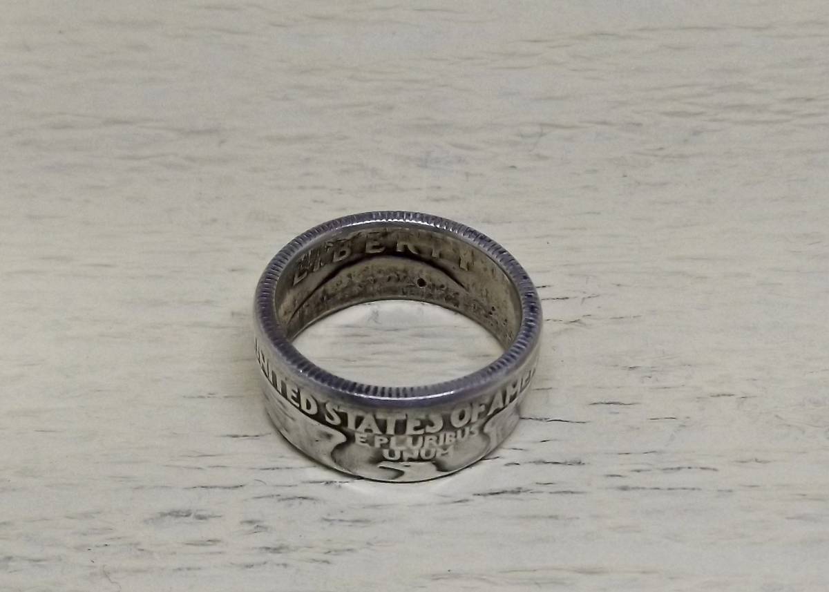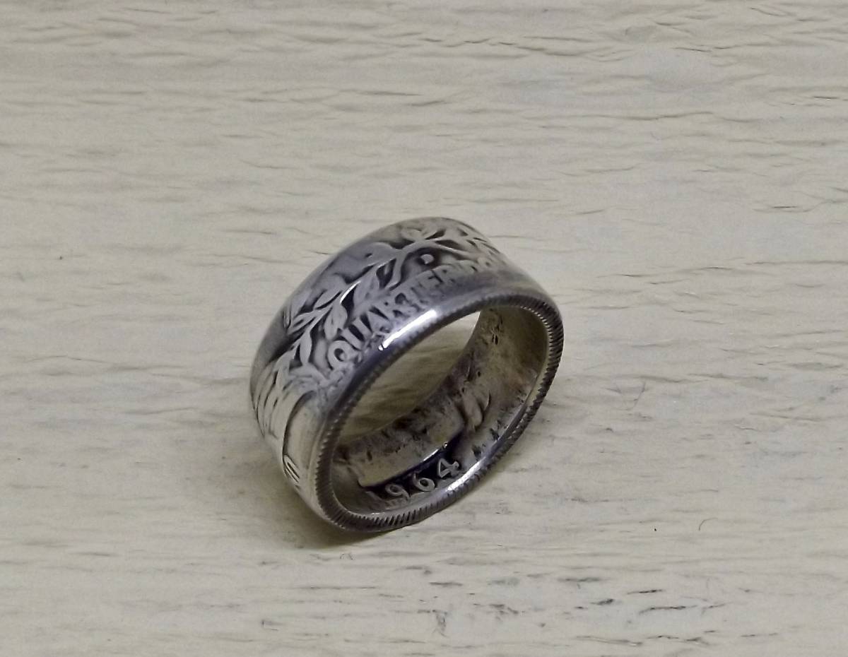 11号サイズ  新品 未使用  コインリング 25セント銀貨使用  (10540)送料無料 本物のコインで制作した手作り銀の指輪