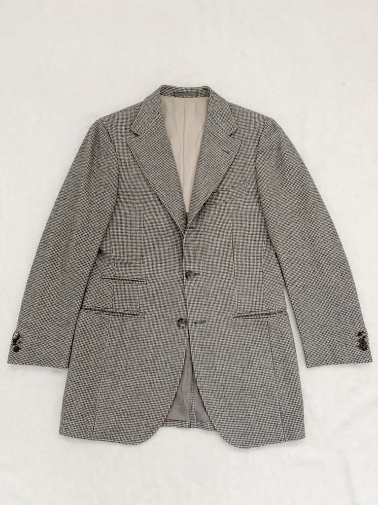 ・カシミヤを混紡した風合いの良い千鳥格子柄生地を使い丁寧に仕立てられた雰囲気抜群でとてもお洒落なジャケットです。