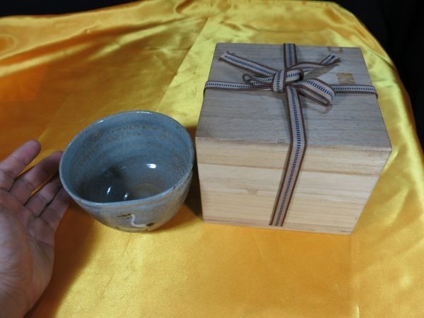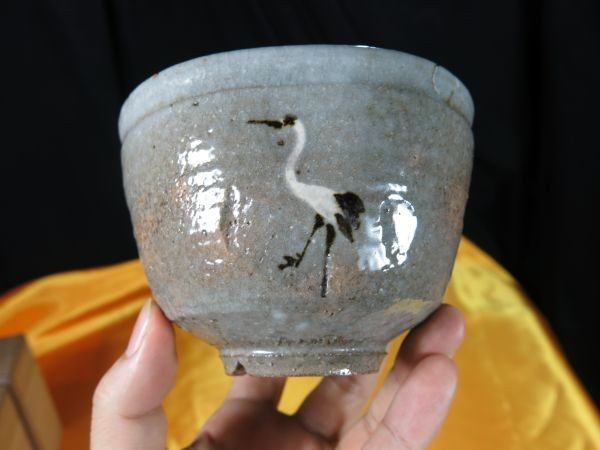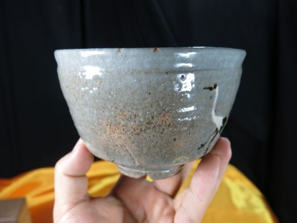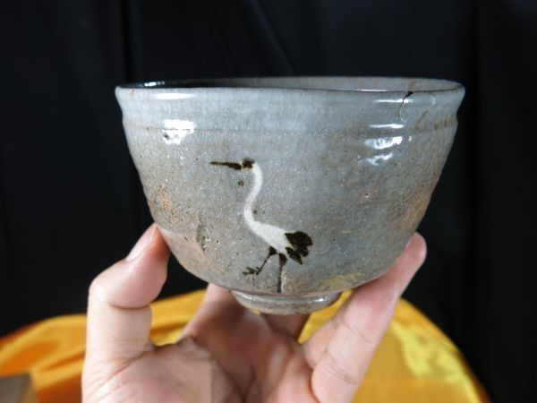 鶴文様象嵌茶碗 陶器 です。     コレクション整理での 出品です。