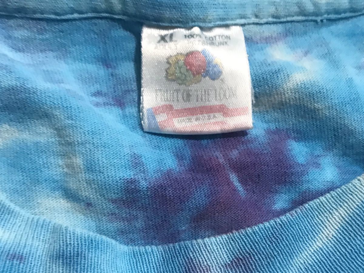 80’sのビンテージのUSA製のFRUIT OF THE ROOM フルーツオブザルームのタイダイ染めのコットン100%のロックのロンT(長袖Tシャツ、カットソー)のサイズXLです。