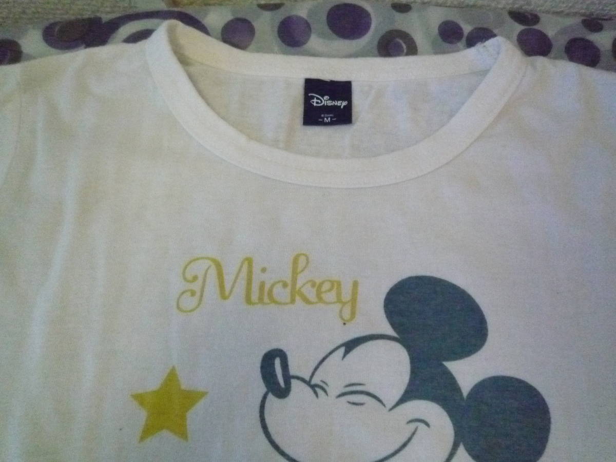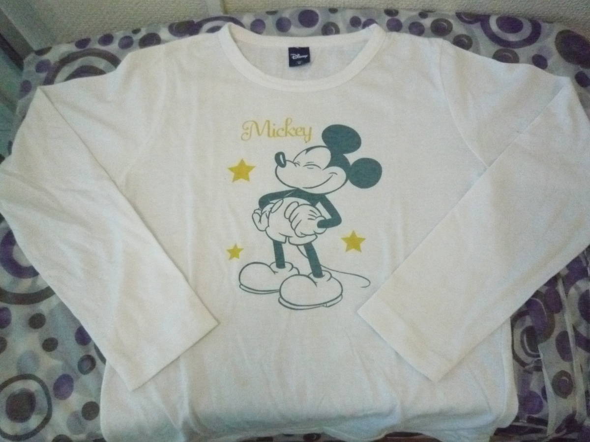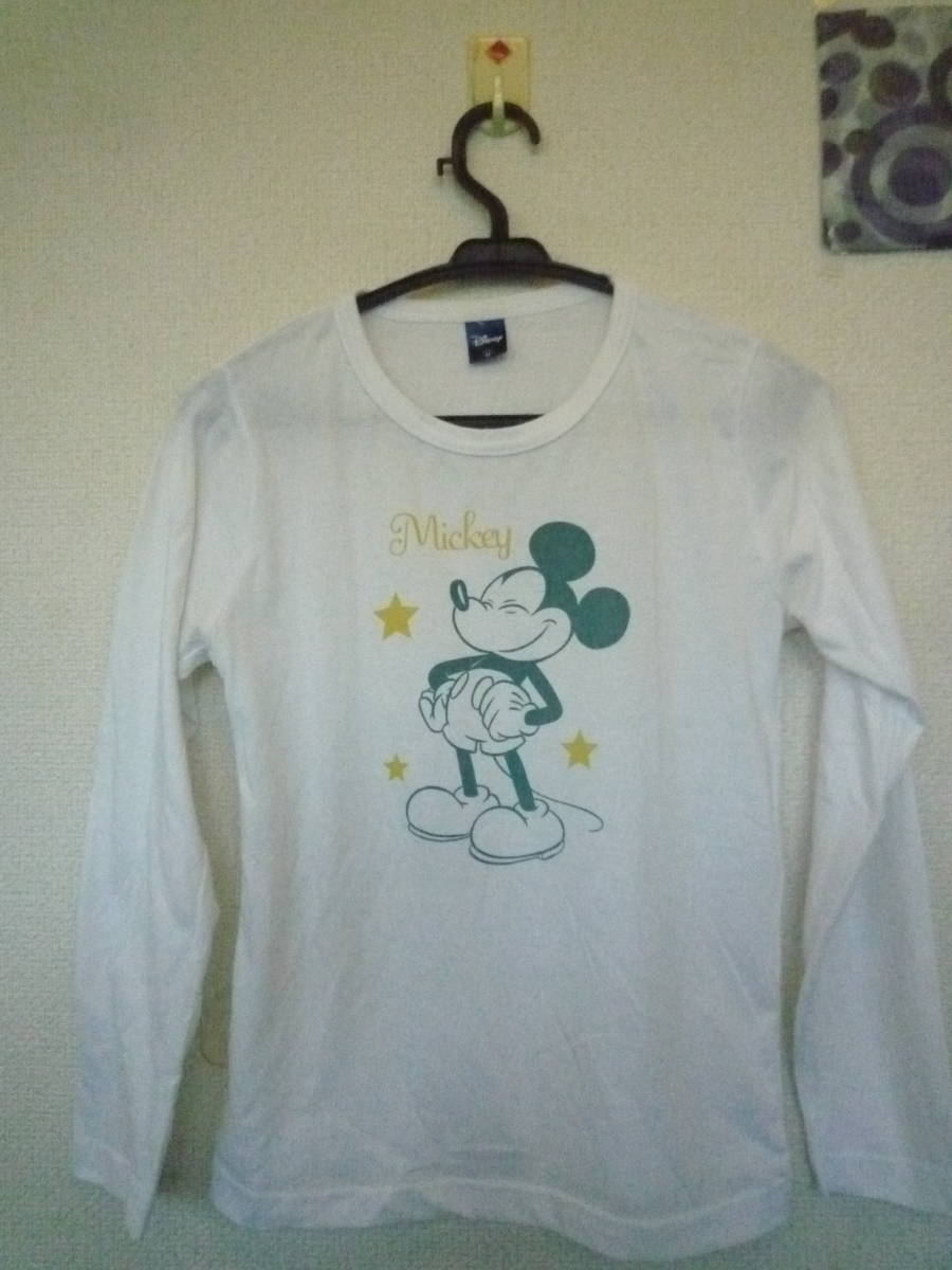 ★ミッキーマウス 長袖Tシャツ イラスト×ホワイト(M)
