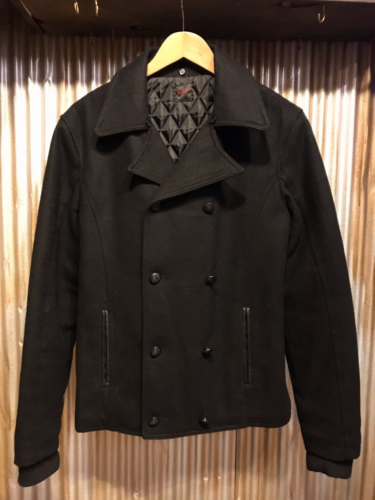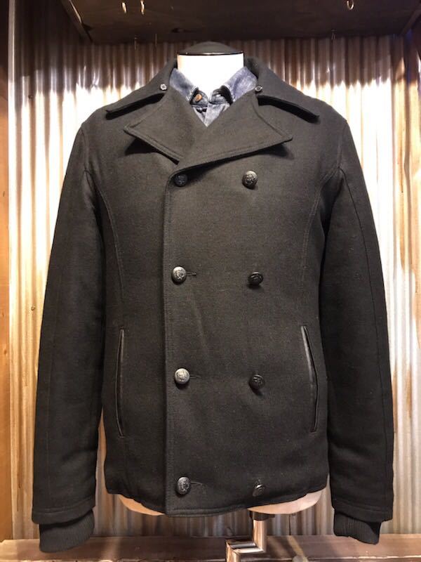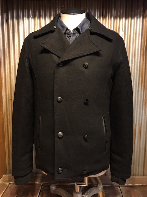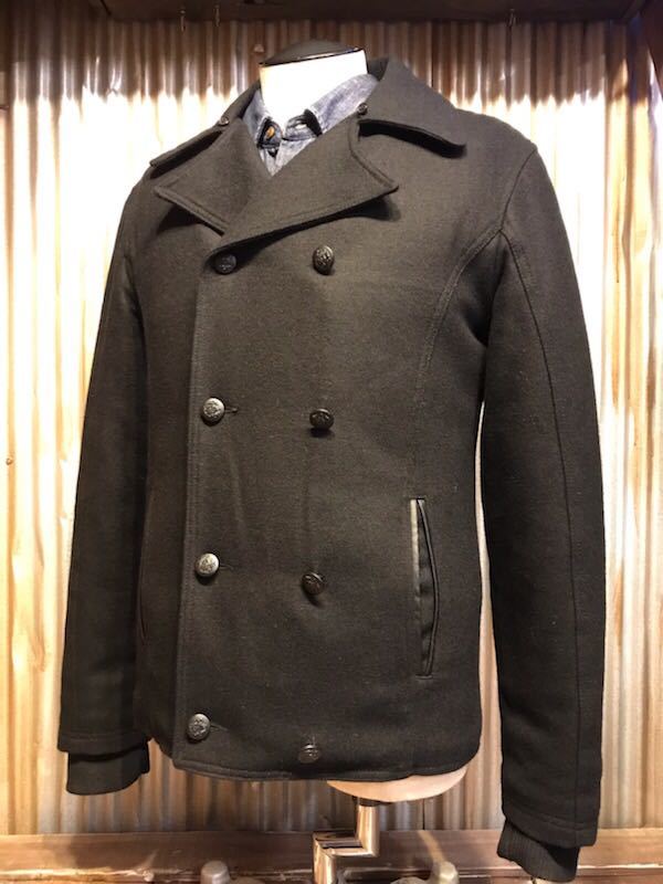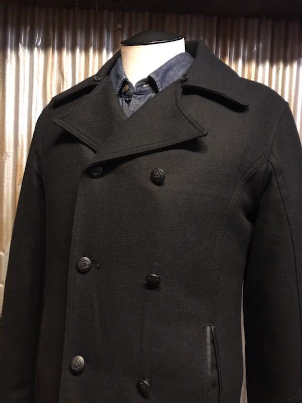 I173 メンズ コート スタイリッシュ♪ JACKROSE ジャックローズ Pコート メルトン ウール 無地 ブラック リブ (10)/ XL