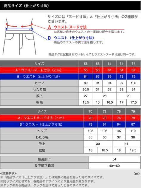 【寸法】WOMEN ウエスト 61cm/ヒップ 88cm 表記