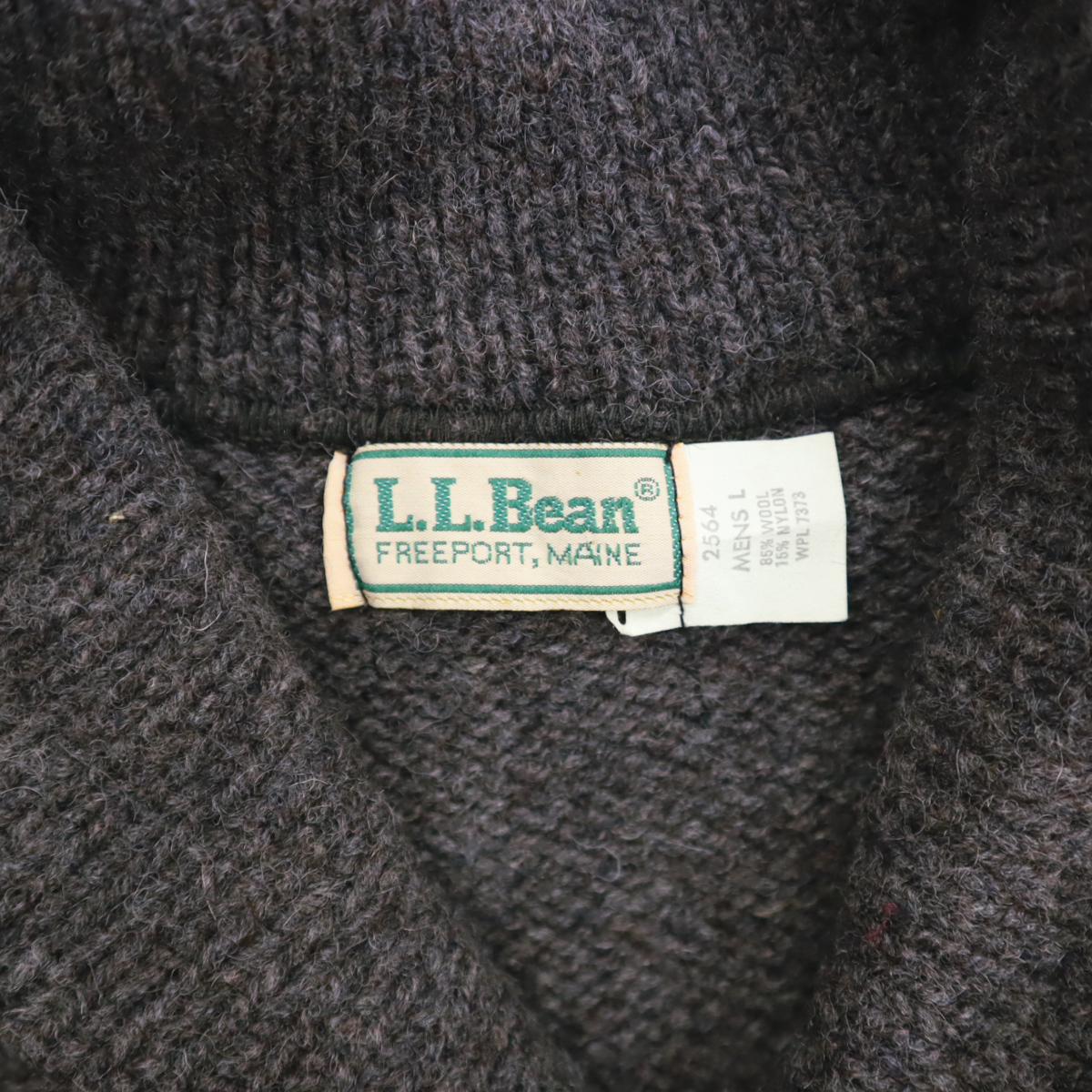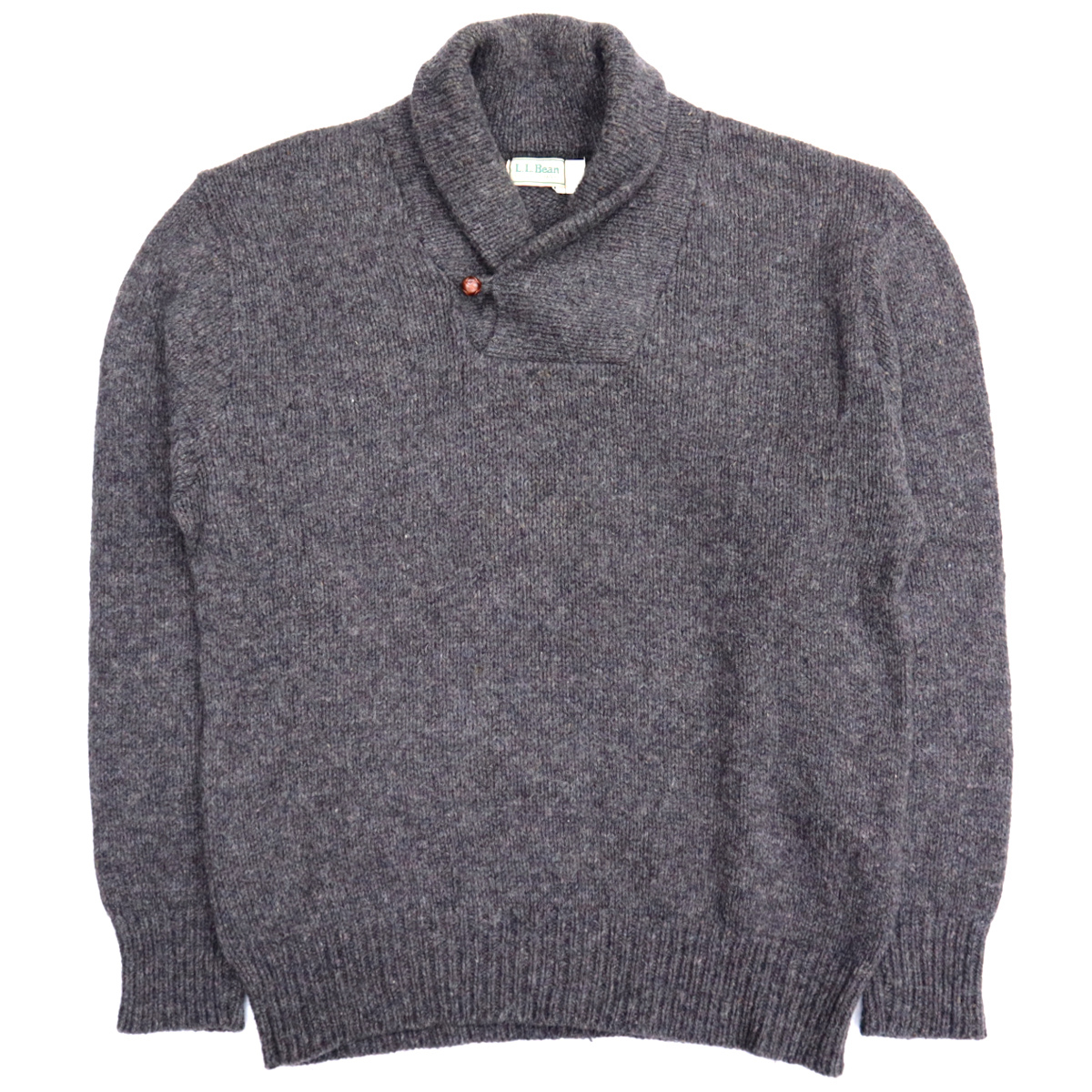 ☆送料無料☆ 80s ビンテージ LL BEAN エルエルビーン USA製 ショールカラー ニット セーター 80年代 古着 アウトドア メンズ L グレー