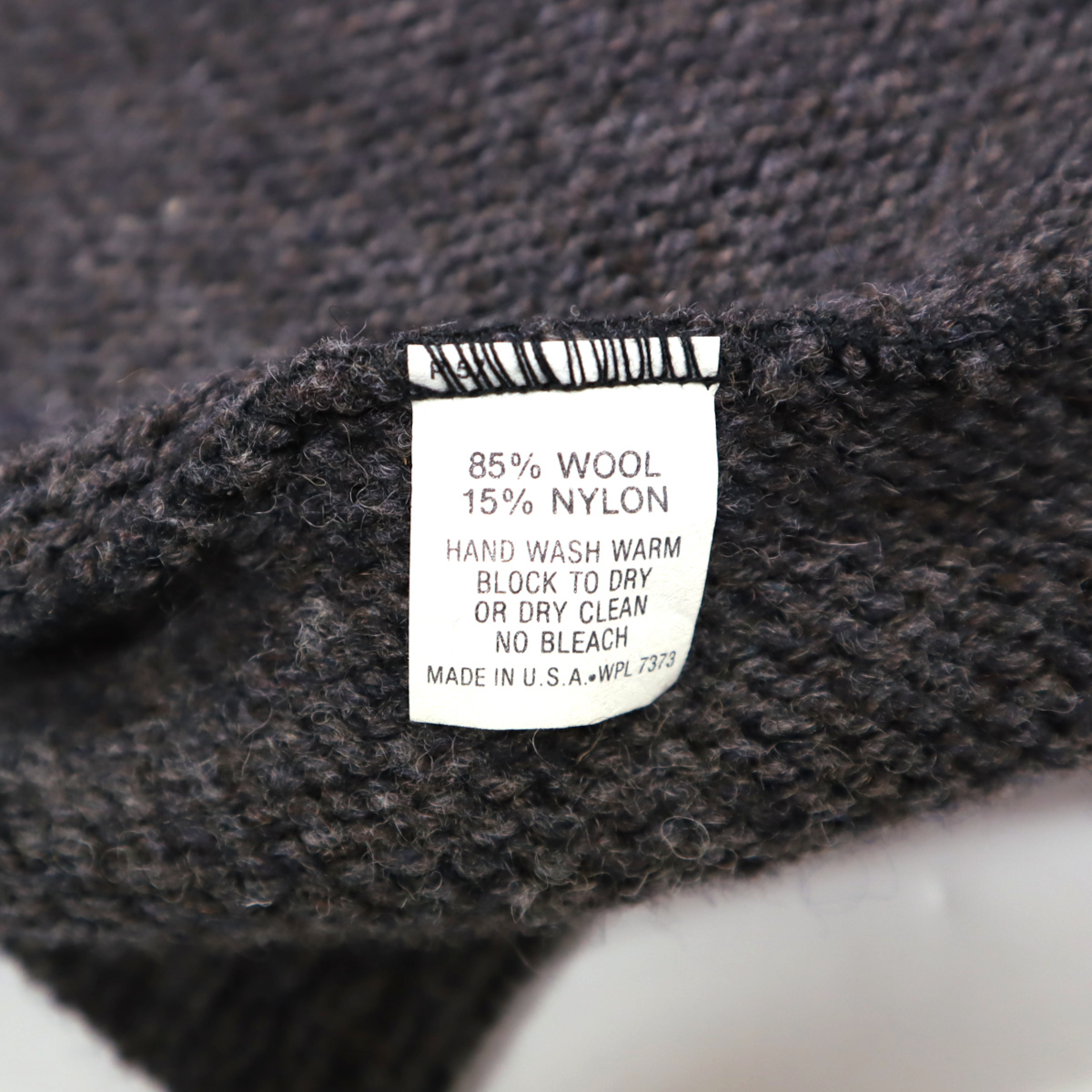 アメリカで購入しました、エルエルビーンのセーターです。USA製で80年代のアイテムです。ショールカラーとデザイン良く、色もチャコールグレーと合っています。サイズ表記はL、参考までに171cm57キロで大きめになりますので、日本サイズでもLになります。オールドエルエルビーンらしい、雰囲気の良い一着です。宜しくお願い致します。