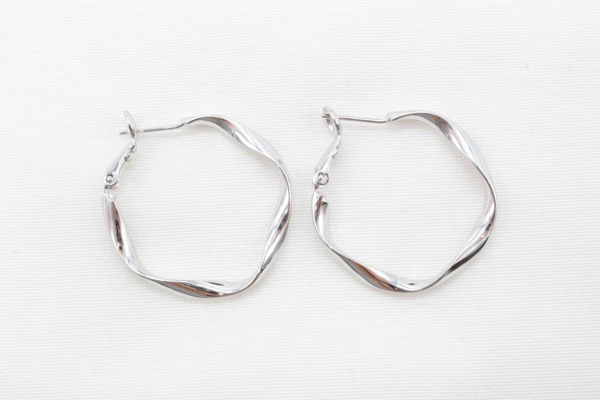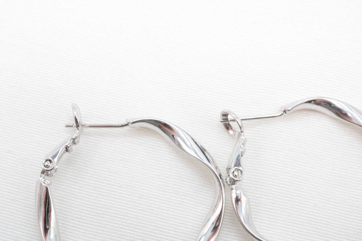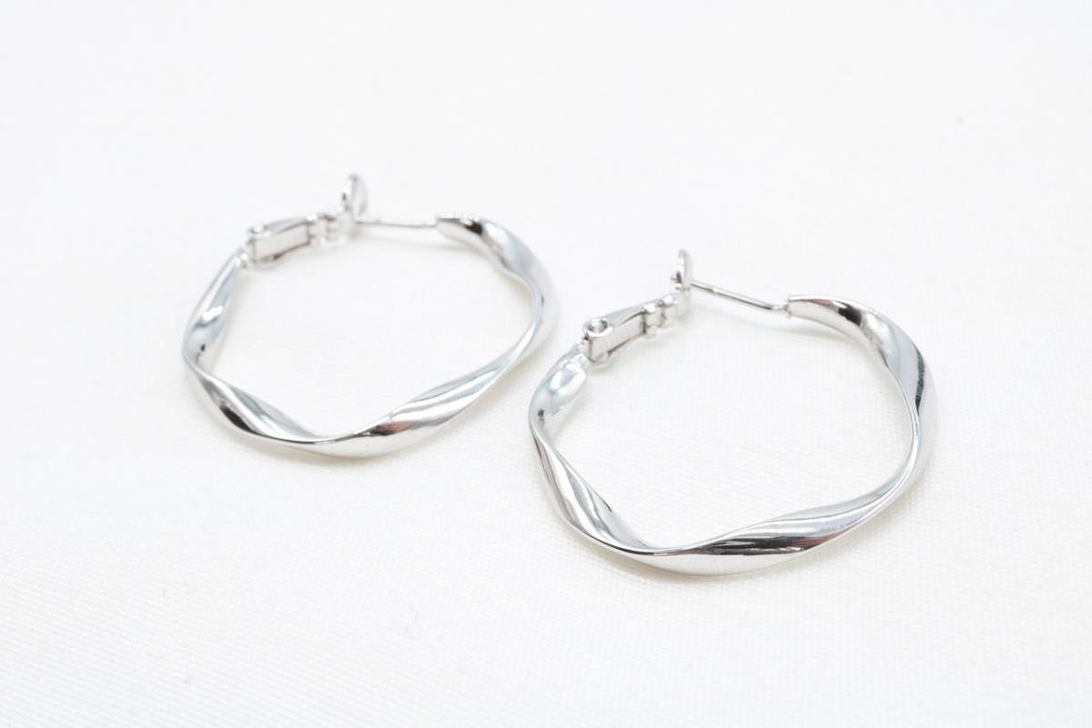 ■ 【S813】フープ ピアス シルバーカラー ツイスト ねじれ 新品【送料全国一律120円】