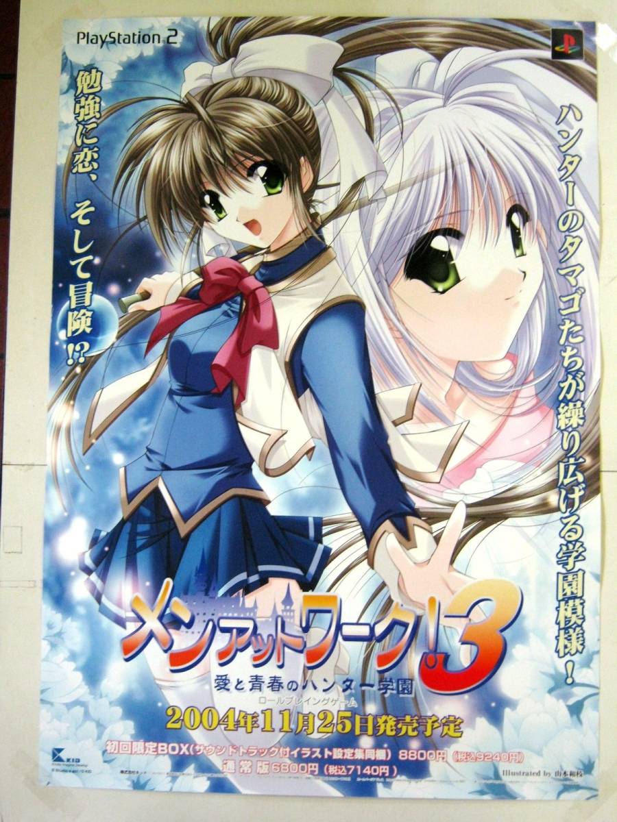 希少! 非売品 販促用 メン アット ワーク!3 愛と青春のハンター学園 2004.11.25発売 プレステ2販売告知ポスター サイズ B2 (51.5 cm × 72.8 cm) #1525 状態は画像をご覧ください。なお昔の品の為、キズ、折れ、汚れなど経年変化の場合がございます。また画像に見えない瑕疵の場合が御座いますので予めご了承ください。