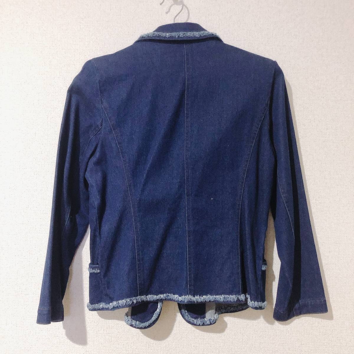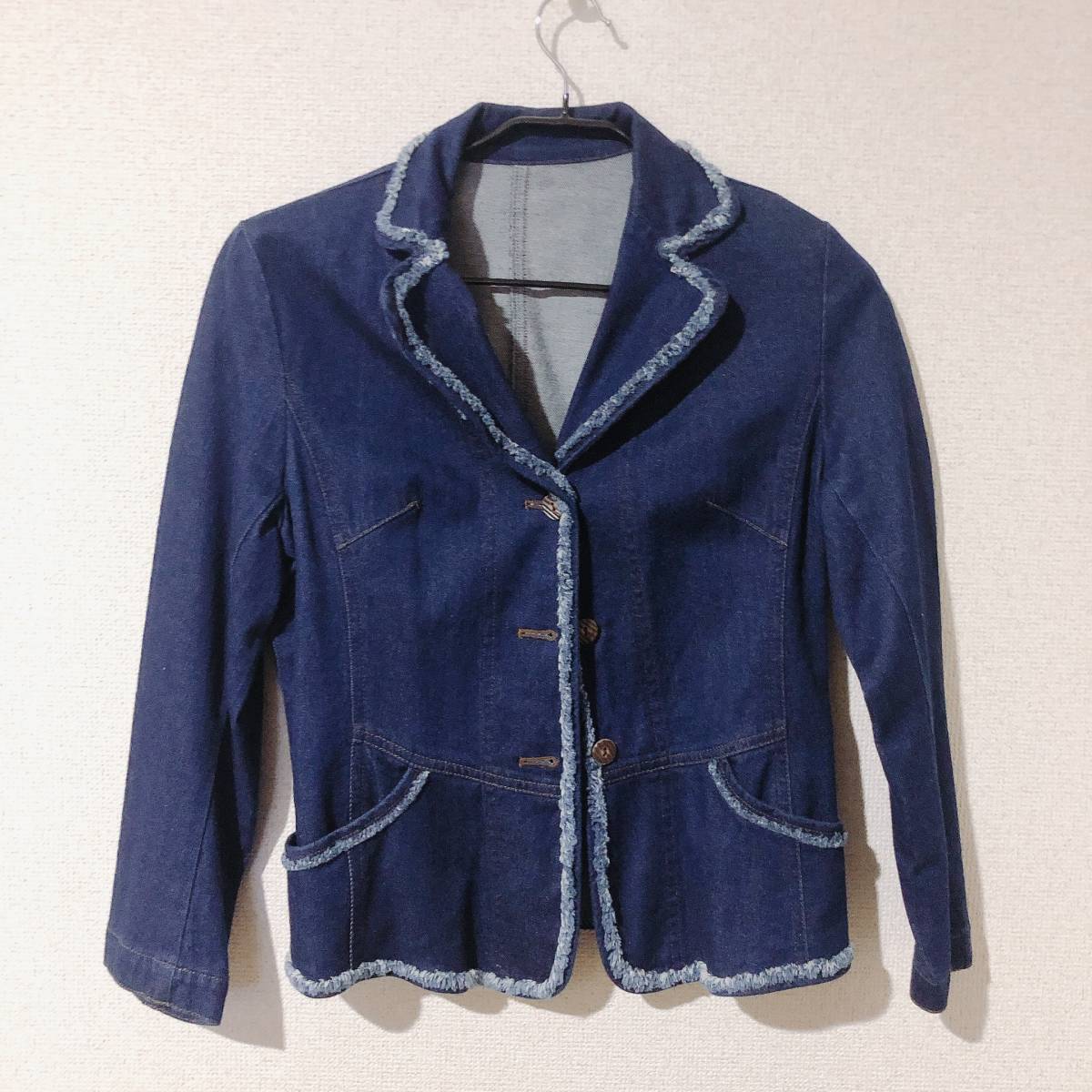 ネイビーブルーのデニムジャケットです。珍しいデザインで、裾や襟、ポケットがとってもかわいいです! |