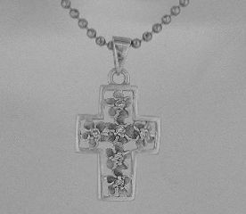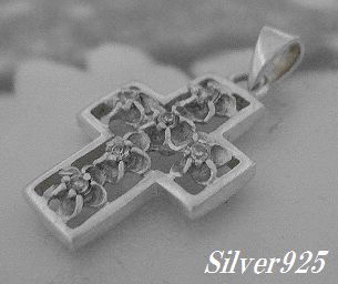 シルバー925銀のハワイアン プルメリア クロス十字架ペンダント[ジルコニア付]シルバーアクセALL50%OFF