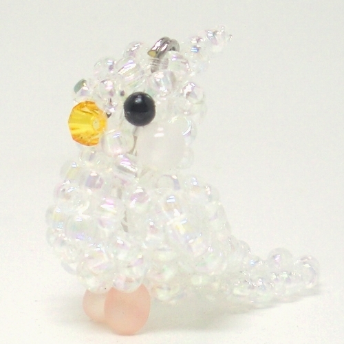 オカメインコ・ピュアホワイト ビーズの小鳥★3WAY(ストラップ・イヤホンジャック・ファスナーチャーム)工房小鳥屋さん
