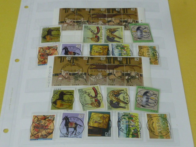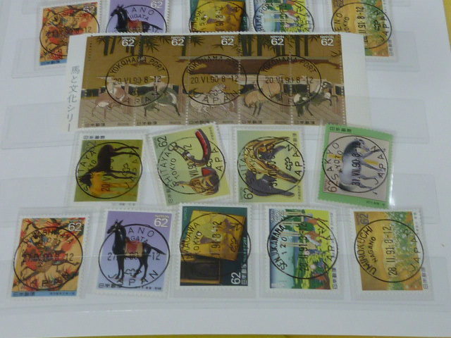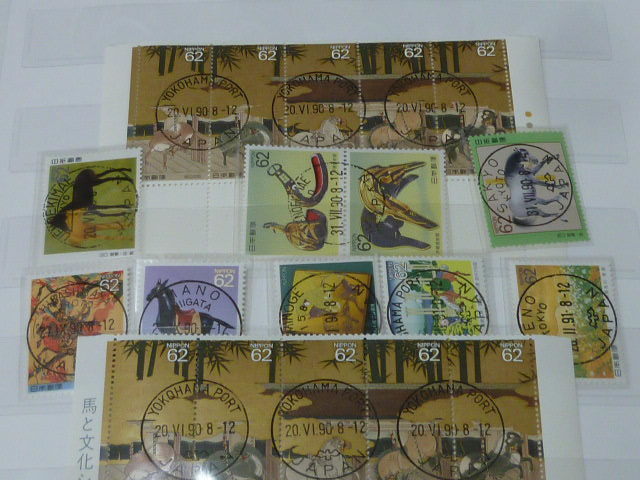 19 日本切手№60 1990-91年 馬と文化シリーズ 欧文初日印付 局違・タイプ違含 計28枚 糊付