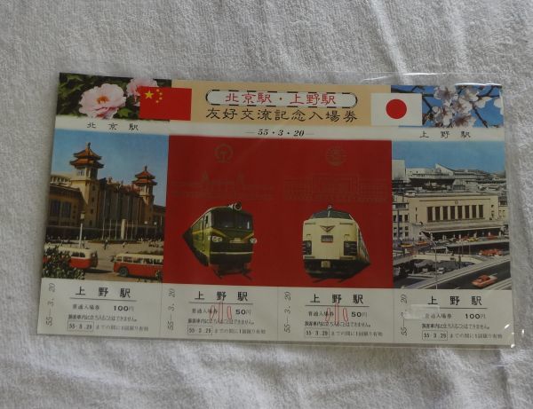 | ◆国鉄◆北京駅・上野駅 友好交流記念 入場券 | |||
