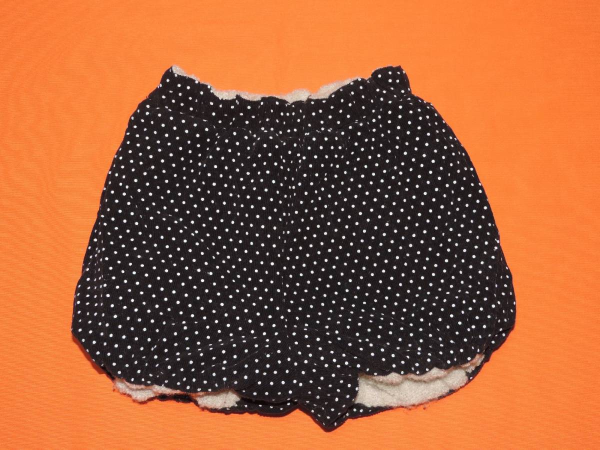 ☆水玉黒×もこもこベージュのリバーシブルショートパンツ☆80センチ☆