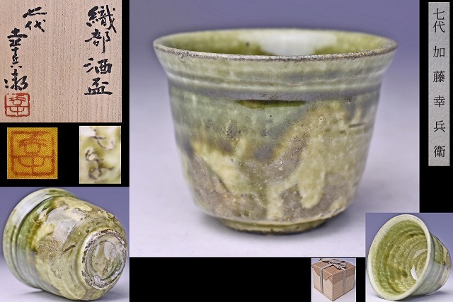 加藤幸兵衛 7代 ★ 織部 ぐい呑 ★ 共箱 共布 栞 ★ 酒器 ★ 父:人間国宝 加藤卓男★ 薫陶:人間国宝 近藤悠三・清水六兵衛 ★