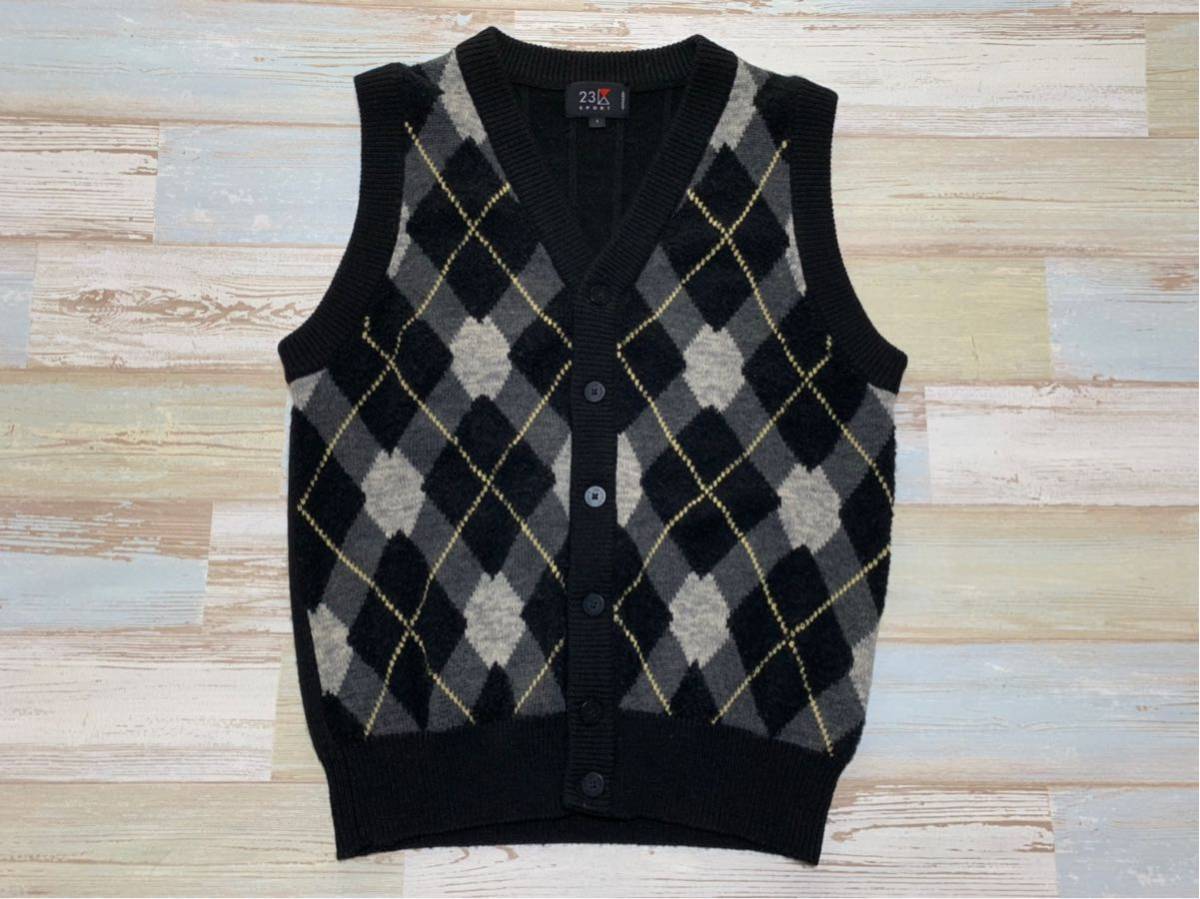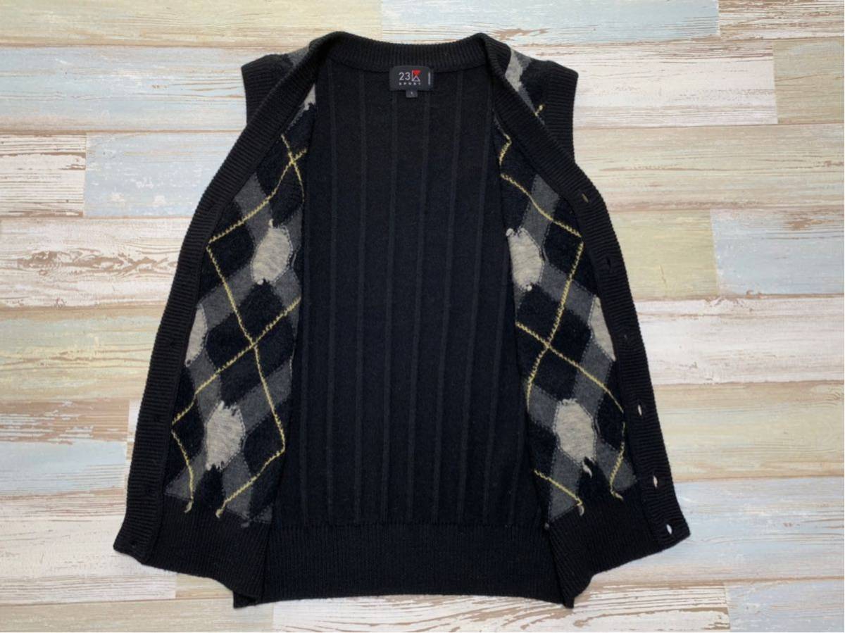 c390 23区 sport■オンワード樫山 ニット 前ボタンベスト アーガイル■黒×グレー サイズ1■ゆうパックお手軽60レタパ510
