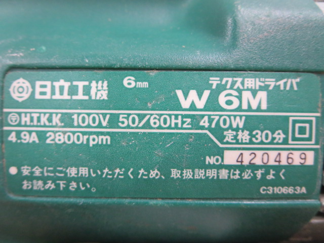 S922 中古 HITACHI 日立 W6M 6mm 電動 テクス用ドライバ プラグ交換済 通電確認済