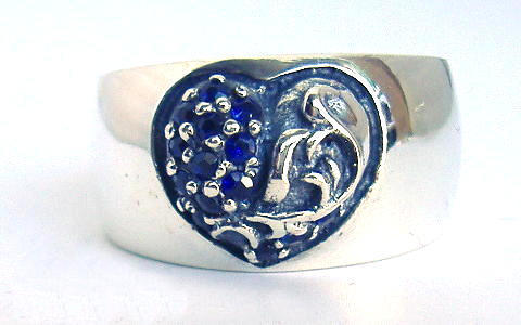 ★◆☆ シルバー925 ハートインバンドリング with パヴェ サファイア 19.5号 ★ ハートリング 新品 未使用 ◆ ハート インバンド リング