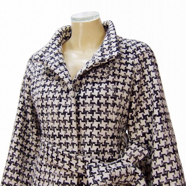 **・゜高級イタリア製ポンテトルト社の上質アルパカ混ツイード生地を使用した極上ベルスリーブコートです。オフ白×アルパカ混の黒~艶グレー系起毛感のある太さ異なる霜降り千鳥格子織柄ツイードです。(質感の異なる織柄が際立つ高級ウールツイード生地)ゆったりスタンド衿×たっぷり優雅なベルスリーブ(ラグラン切り替え)×シームレス両サイドポケット×背面ネック下は立体タック入り×付属リボンベルト留デザインです。お洒落な色彩の高級ツイードジャケットコートです。。*:.。(春秋、冬晩秋向き)