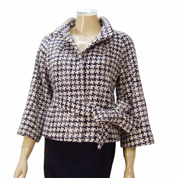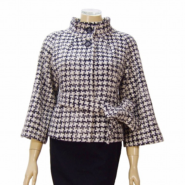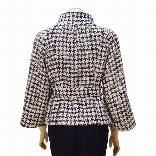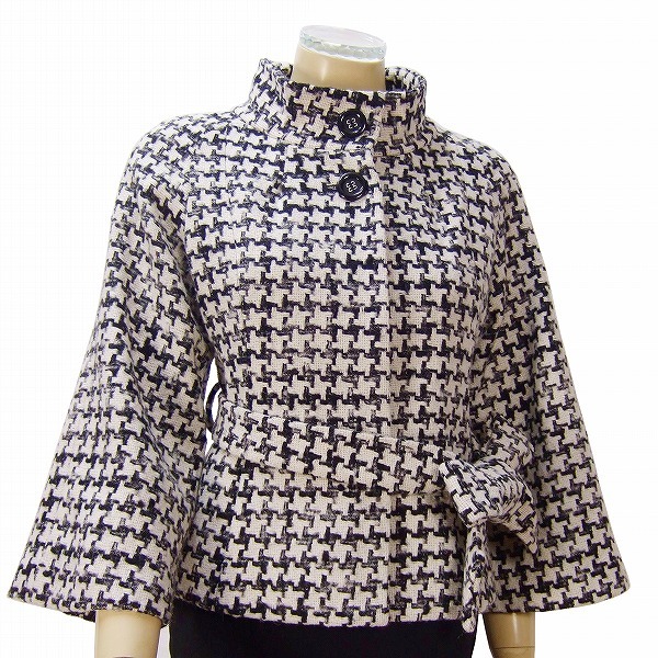 CO)美品*イネド INED★伊)製 ポンテトルト社×アルパカ混 千鳥格子ツイード★ベルスリーブ★綺麗ショートコート★9号(Mサイズ 38)日本製