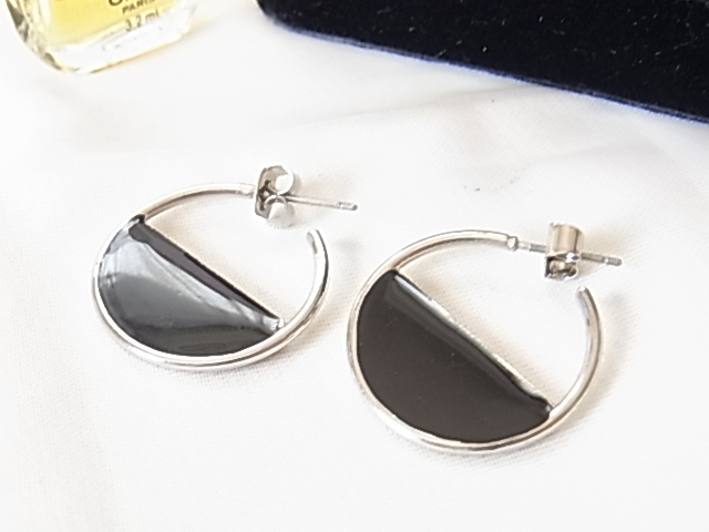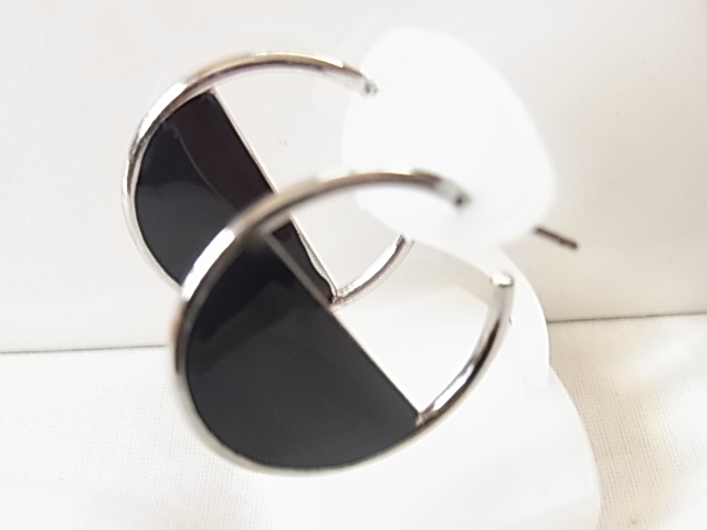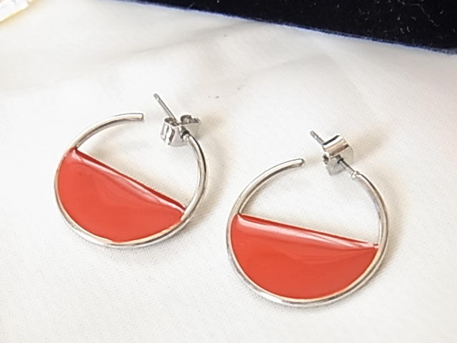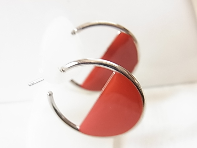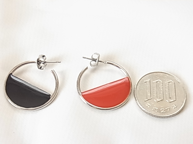 レッドカラーとブラックカラーの2色 両面が色違いでお洒落感 フープに半円形のデザイン 小ぶり ピアス★