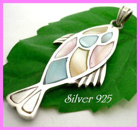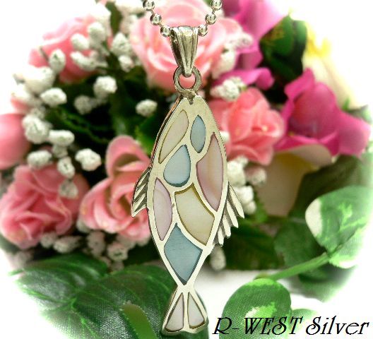 シルバー925銀のシェル貝殻入り魚のモチーフ ペンダント/パステルカラー