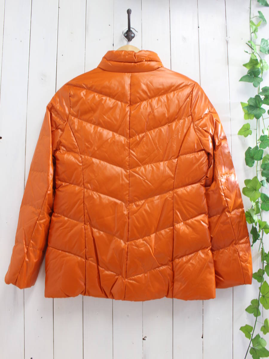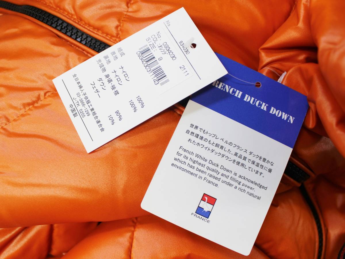 マルイ取扱【shallish】高品質フランスダック ダウンジャケット ブルゾン 9号/オレンジ×ブラック【369-13】