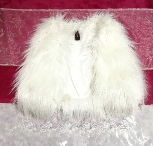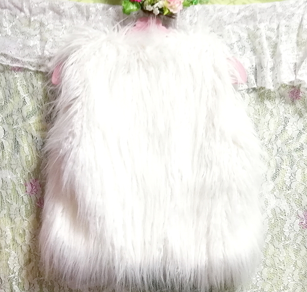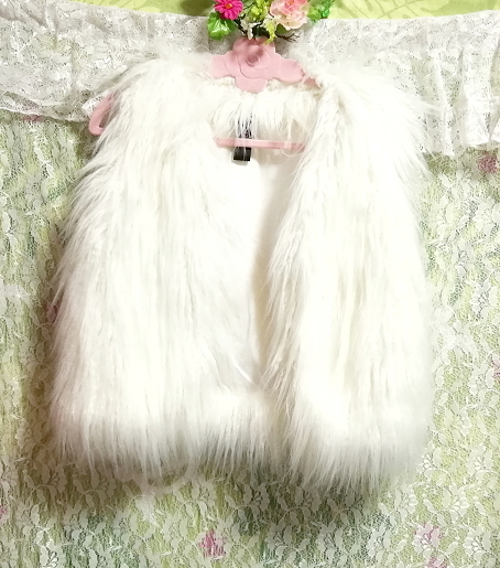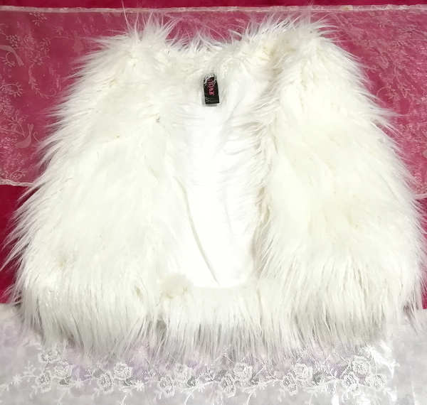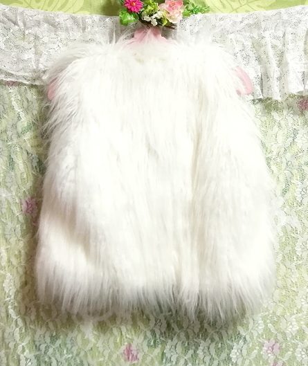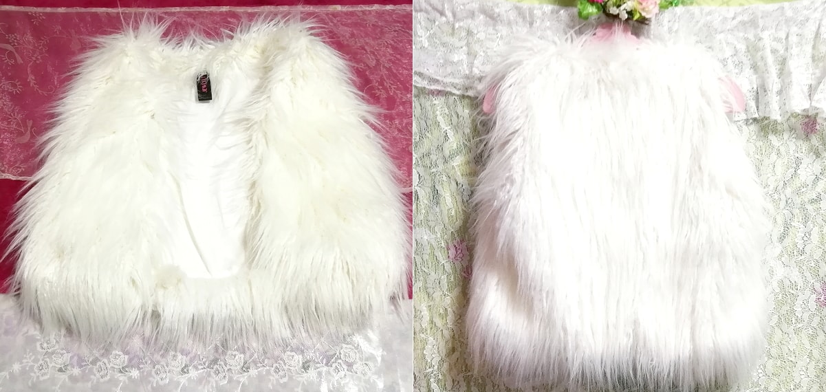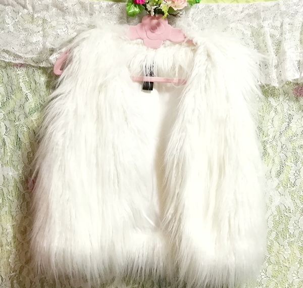 白ホワイトフワフワミニベスト/カーディガン/羽織 White fluffy mini vest cardigan