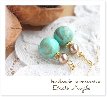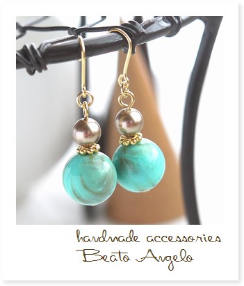 ◆◆+angelo+ドイツビーズとスワロフスキー パールのピアス(p-078)ターコイズ G 香水瓶 ブルーグリーン ※廃番