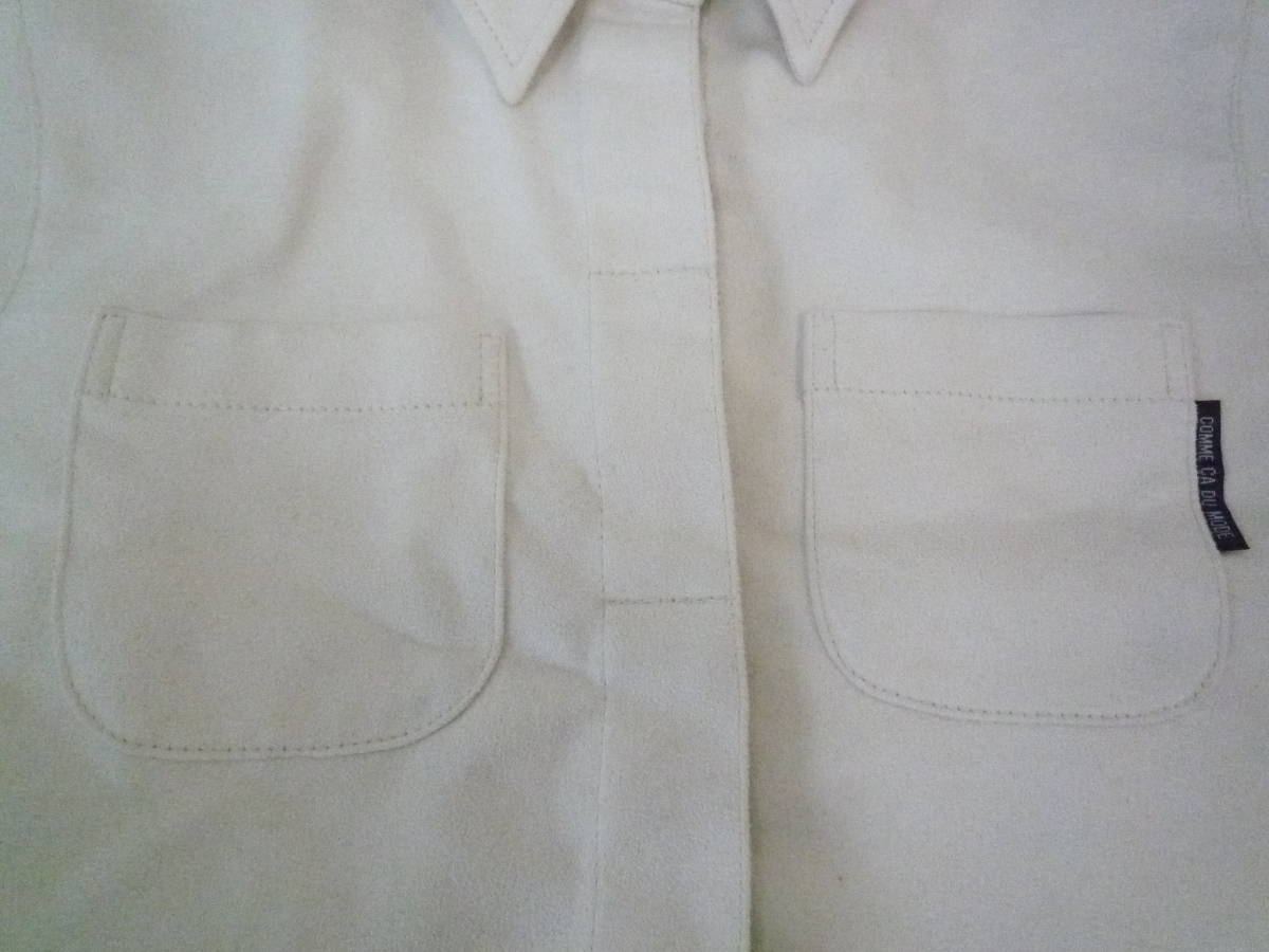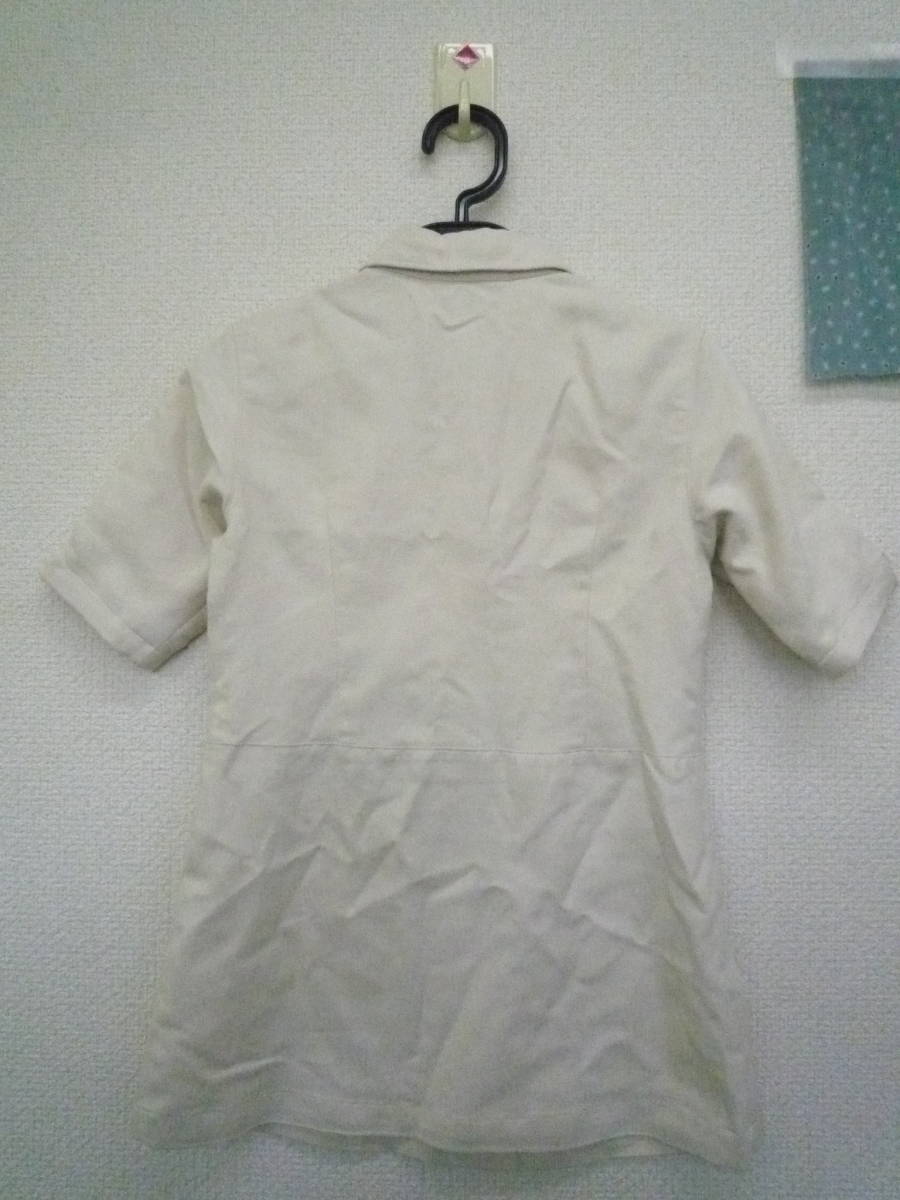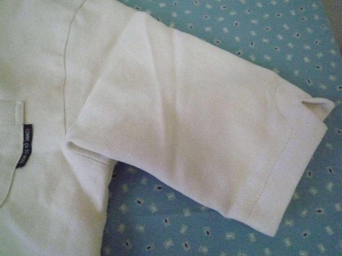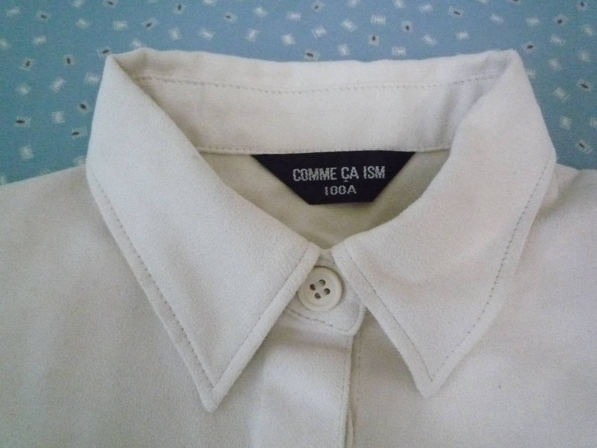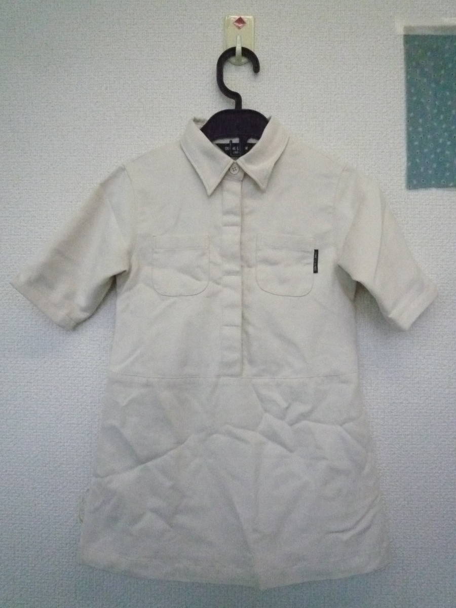 ★コムサイズム 半袖シャツワンピース 無地 シンプル アイボリー系 ソフトタッチスエード調? サイズ100A