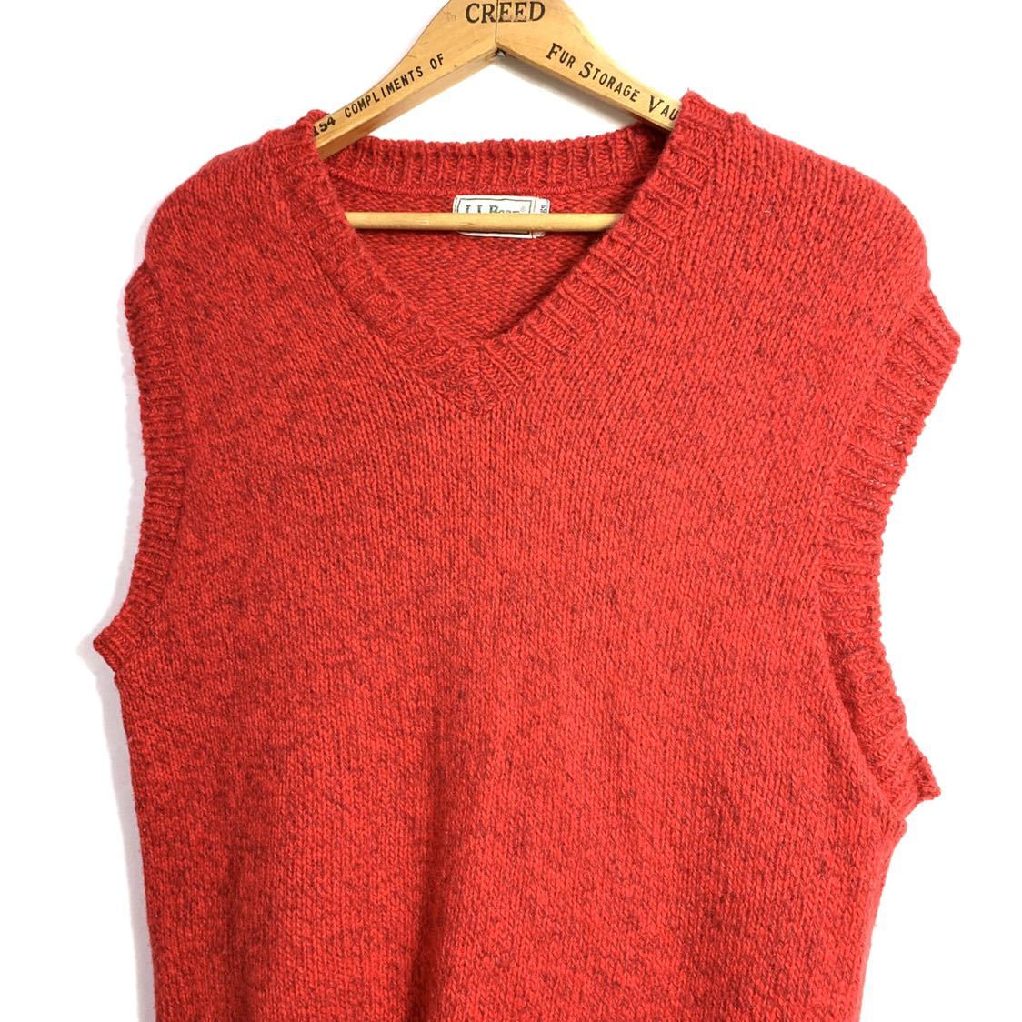 ■L.L.Beanビーンウール素材Vネックニットベスト/古着アメカジレッドL■