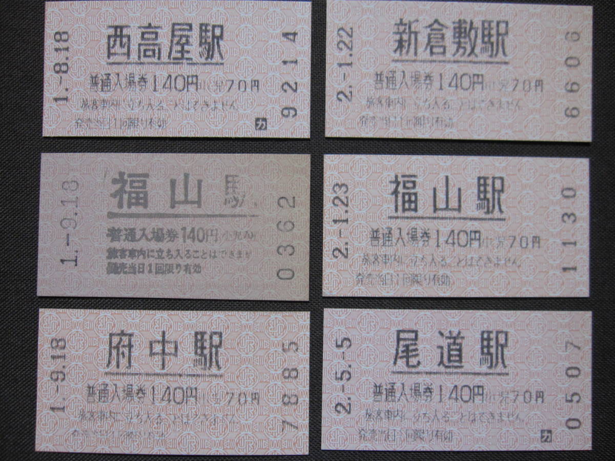 【入場券・自動券売機】 西高屋 新倉敷 福山 府中 尾道 JR西日本 (未使用)