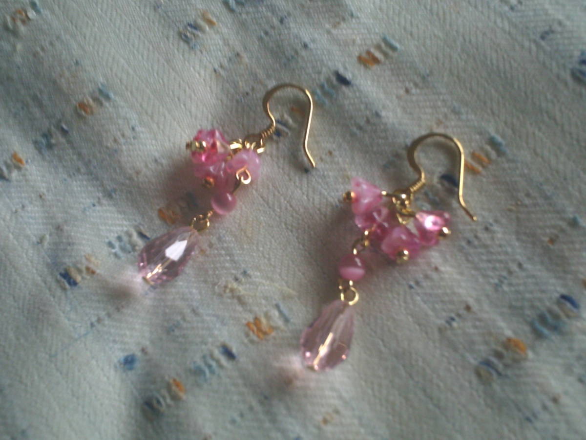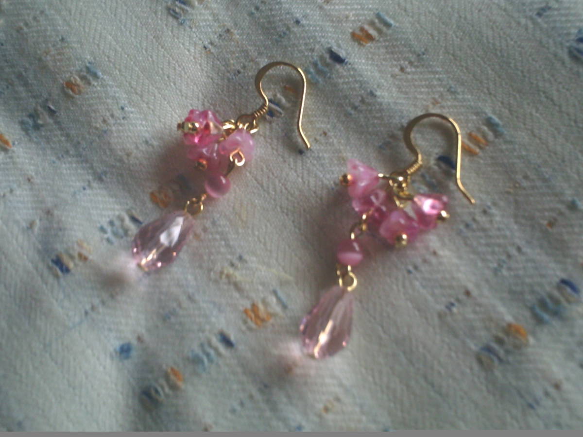 ★★★ハンドメイド ピンク ベルフラワー&しずくのロングイヤリング 新品★★★★ | |||
